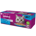 WHISKAS Adult pungi 40 x 85 g Mix de arome - hrană umedă pentru pisici adulte, în gelatină (bucăți cu: vită, pui, somon, ton)
