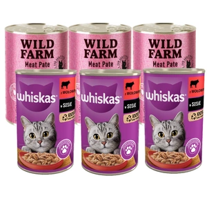( numărul de produse: 9 )WHISKAS Hrană umedă pentru pisici 1+ cu carne de vită în sos 3x400g + WILD FARM Pate cu carne de vită 3x400g