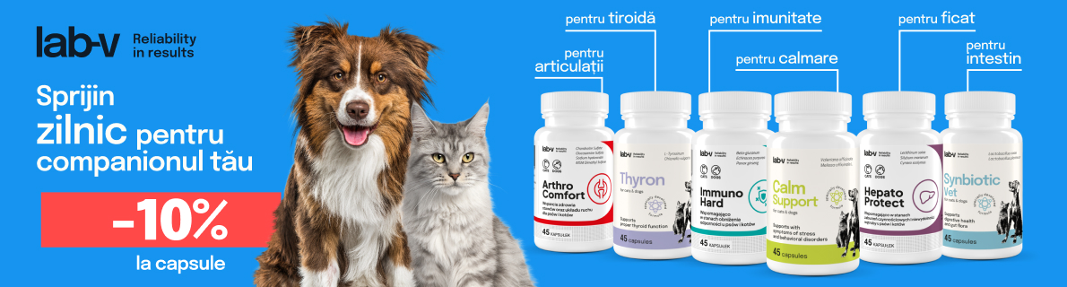 LAB-V Synbiotic Vet - Suport pentru sănătatea gastrointestinală și microflora intestinală pentru câini și pisici 2x90 capsule
